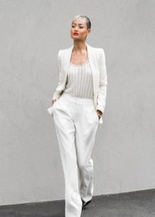 An elongated blazer, with or without sleeves, is at the peak of popularity today. The oversize baggy blazer also looks great, as if borrowed from a boyfriend. It looks very bright and unusual in combination with wide trousers, the image is calm and relaxed.