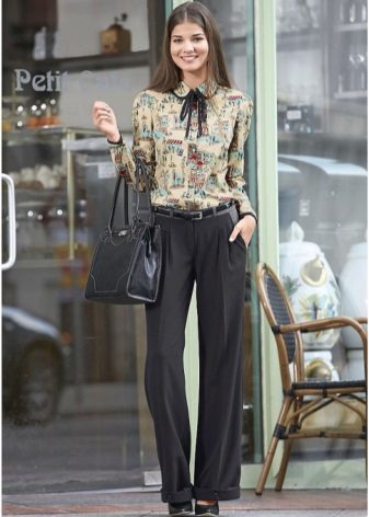 Wide trousers are just trousers, so you can wear them with the same clothes with which you wear jeans or a regular classic model. It can be t-shirts, blouses, blazers, turtlenecks, sweaters.