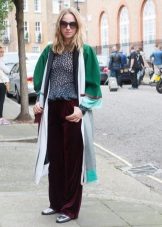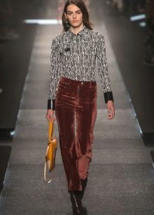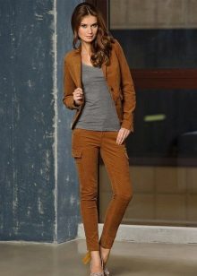 Particular accuracy and taste are required when designing an outfit. At the same time, velveteen has some drawbacks - it is an everyday and even working fabric, which can sometimes add a couple of extra pounds in the hips. So be careful with the choice of trousers.