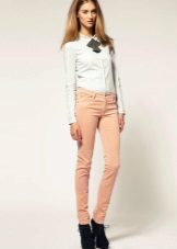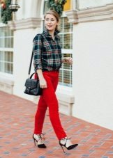 Everyone's favorite skinny pants look stylish with t-shirts, with shirts and sweaters. Unlike other styles, this model is most often produced in unusual colors, for example, in pink or purple.Do not forget about the classics - brown and red trousers will always be relevant.