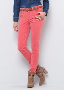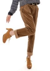 Basically, all corduroy pants are sewn by analogy with their more popular competitor - jeans. All models are almost identical, but unlike cold blue shades, velveteen is associated with comfort, and the usual color scheme consists of warm shades.