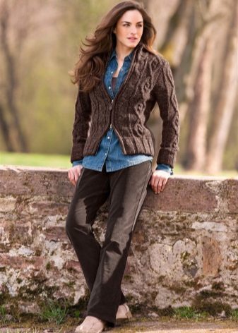 Corduroy pants are part of every-day style. You should not wear clothes made of lace, satin, silk, and velvet with them. Knitwear is perfect.