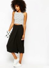 Skirt pants are a very versatile thing. However, choosing such a thing for yourself, you must take into account the characteristics of the figure and, mainly, growth. A slender girl can safely try on a model of any length and width.