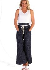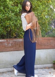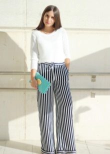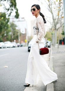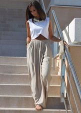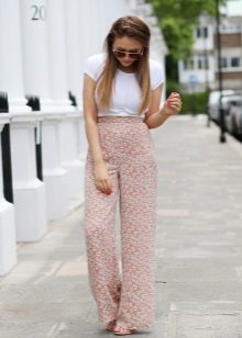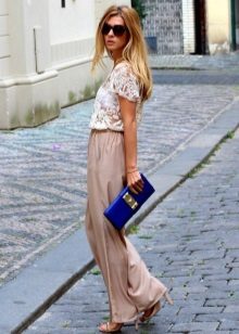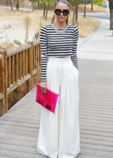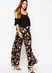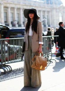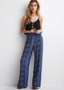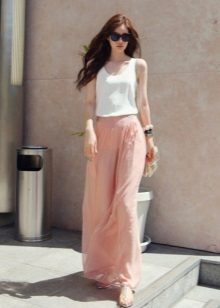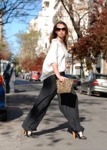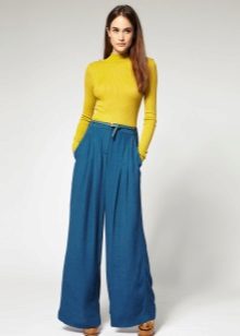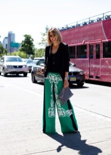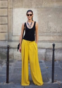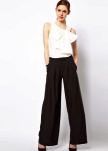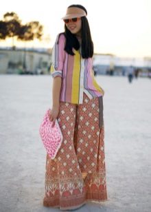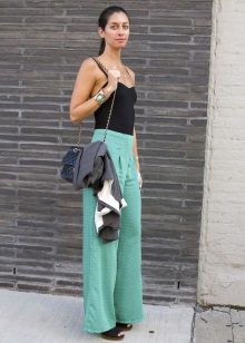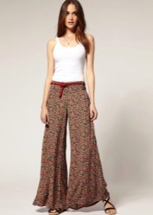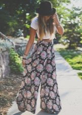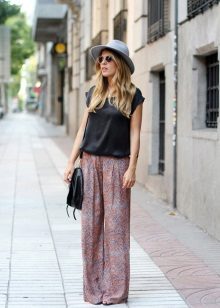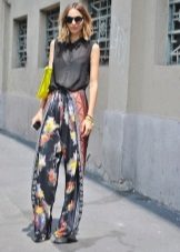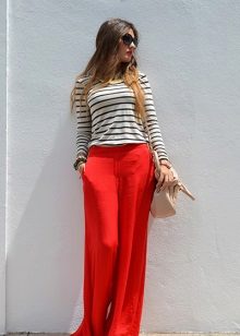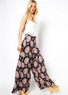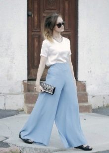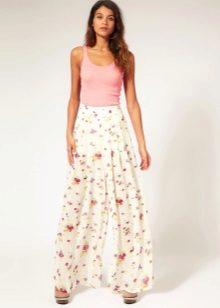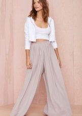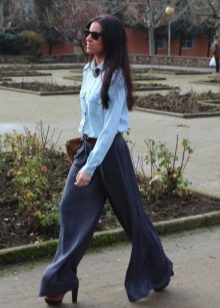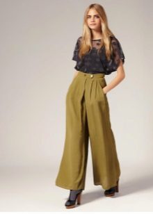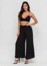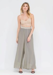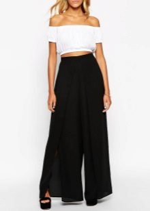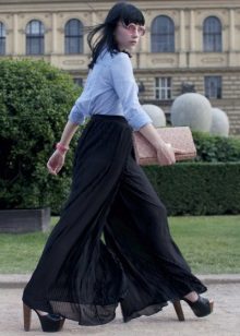 For long models, the correct name is palazzo pants; shortened models are called culottes. These are very wide trousers just below the knee, which look like a midi skirt.
