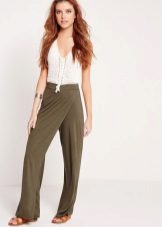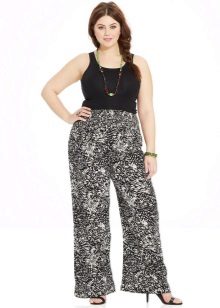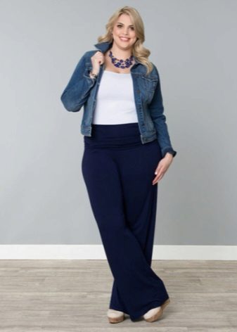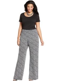 Full women should pay attention to those models that fit tightly on the upper thighs, have flared-style legs and are made of light flowing fabrics.