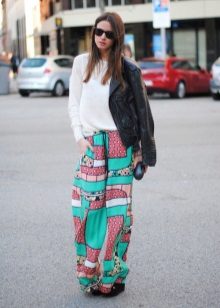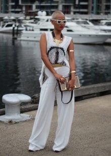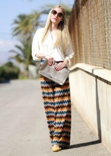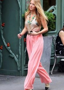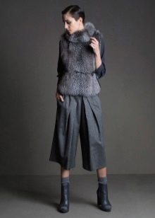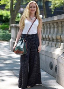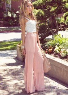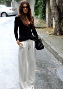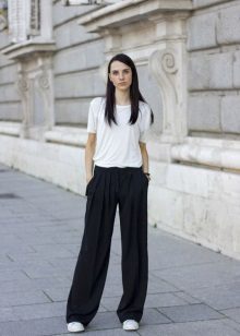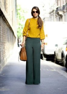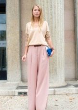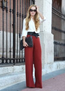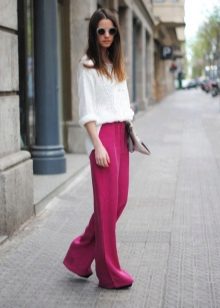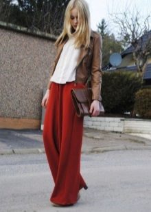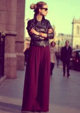 Girls with wide hips and narrow shoulders, as well as owners of legs in the shape of an “X” skirt-pants will be a real salvation. She will cover up these shortcomings, leaving to the eyes of those around only virtues.