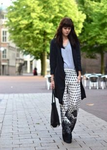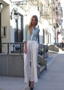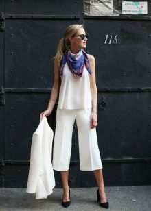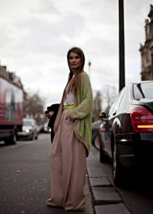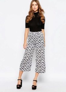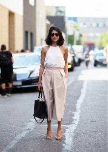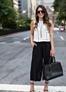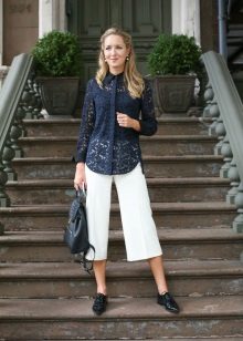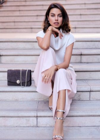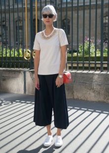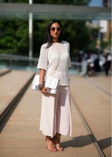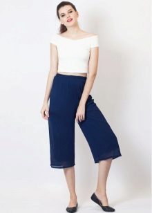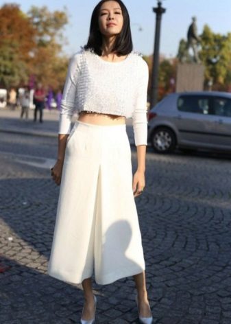But modern fashion trends are making adjustments. Previously, only very tall women were allowed to combine this type of clothing with flat shoes. But today, an exception can be made. The fact is that the most fashionable model of a trouser-skirt - with shortened trouser-legs - is ideally combined with loafers, oxfords and rough sandals on a thick but flat sole.