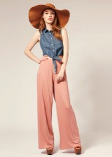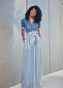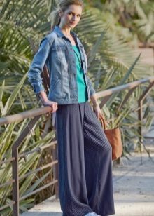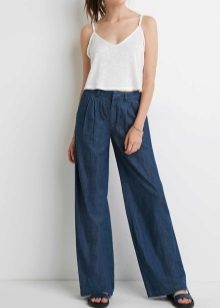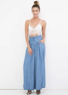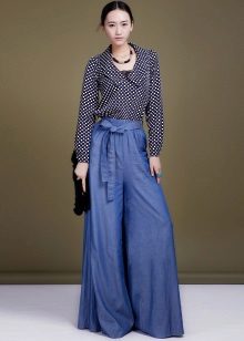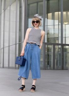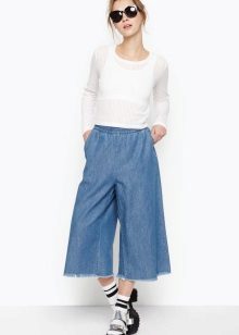 Another great option for every day is the novelty of the latest fashion shows - denim skirt-pants. This material is more relevant today than ever. Depending on the density of denim, such a skirt-pants will be appropriate in a particular situation (both at a meeting with friends and in business negotiations).This is a great opportunity not to wear common jeans, but at the same time not to change your love of denim.