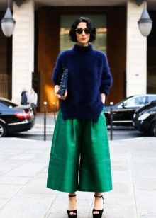 For dates, entertainment and just to create a cheerful mood in the outfit, skirt pants of bright colors are selected. But do not forget about the sense of proportion, because this wardrobe item is bright in itself.