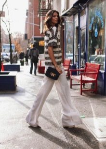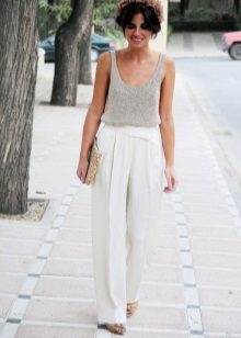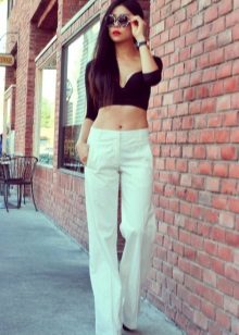 The most fashionable combination with cropped trousers is today a loose or tight-fitting crop top.