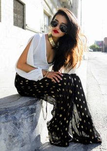 Light airy fabrics (chiffon, satin, silk, etc.) are appropriate. Everything that carelessly falls and flows, is suitable for summer culottes. In this case, any colors are possible: bright and pastel, black and white, geometric and floral prints - a complete flight of imagination. For summer, lace is also relevant.