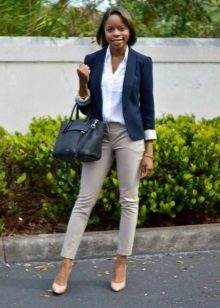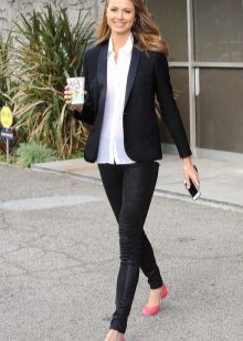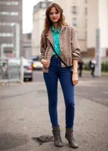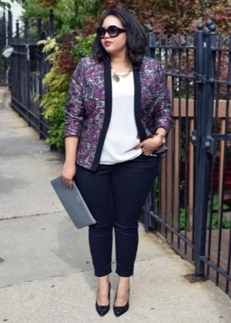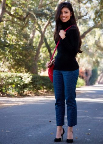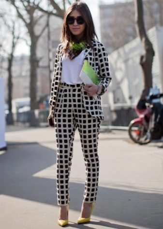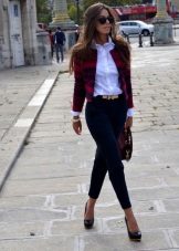 A stylish suit with skinny pants is impossible without the right accessories. One bright detail is enough - a beautiful bag, original glasses, a massive necklace or an unusual hat.