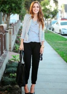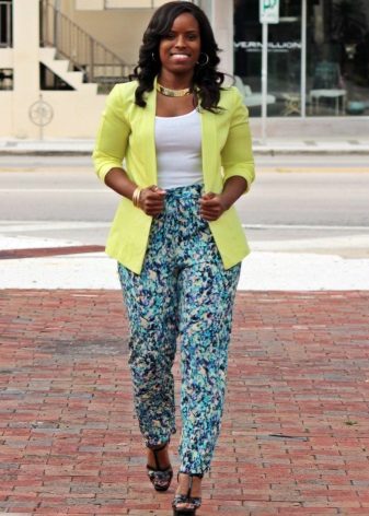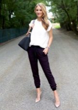 For slim ladies, skinny trousers are also not contraindicated. But they need to choose the model more carefully: fit pants with a high rise, not fitting hips and calves, for example, banana pants 7/8 long. It is better to refuse lush beauties from sports models from thin knitwear and tight-fitting trousers to magnificent beauties.