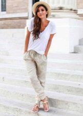 Beige trousers are a great casual choice. They look restrained and elegant, but at the same time combined with things in a variety of styles.