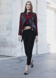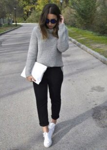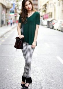 Skinny trousers can be combined with a voluminous, loose or fitted top. Follow a simple rule: the wider the lower part of the kit, the narrower the upper should be. For example, riding breeches are best combined with fitted jackets and tight-fitting tops, and pipe trousers with oversized sweaters and loose shirts.
