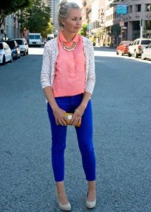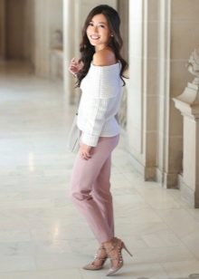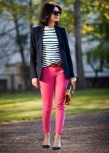 Pink skinny pants will appeal not only to young, romantic natures, but also to adult girls who want to create a gentle and fresh look.