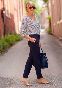 We have mentioned more than once what kind of shoes fit skinny trousers. If you are below average height, high-heeled shoes or sandals are highly desirable. Tall ladies can afford flat shoes or small wedges - boots, loafers, moccasins, espadrilles, slip-ons, etc.