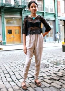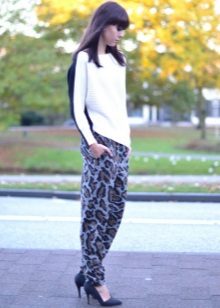 These are pants with a smell on the belt, wide at the hips and narrow below the knees. Modern women's breeches often have a beautiful decor in the upper part, for example, a large bow or unusual belt, as well as decorated with buttons or buckle tops.