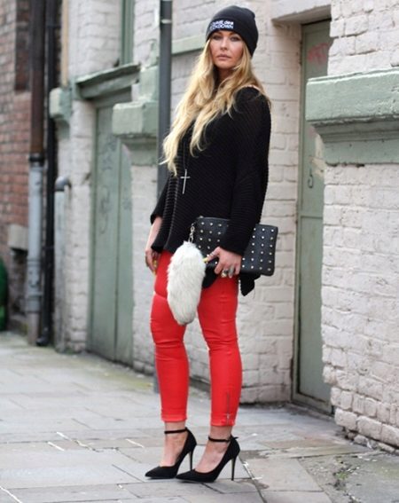 Red trousers look very expressive and always attract attention; therefore, if you want to catch admiring glances on yourself, stop your choice on this particular color option.