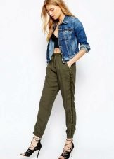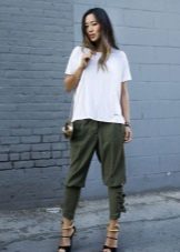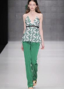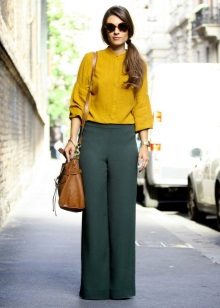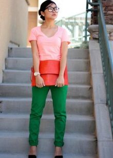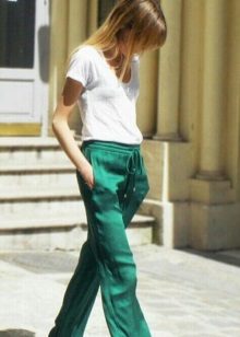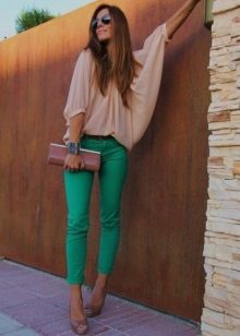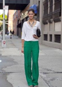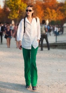 Blouses, shirts, t-shirts, tops, sweaters - this is not even the whole list that you can wear complete with green trousers. The only thing if you choose an outfit for the office, then you should focus on olive or dark emerald color in combination with white. For other events, bright shades are suitable.