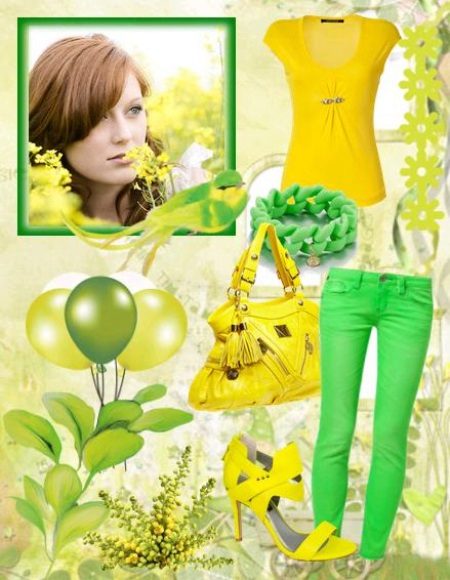The combination of these two colors in your outfit can describe you as a cheerful and friendly person. From lemon to brownish - red color, any shade there is a couple in green.