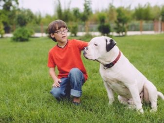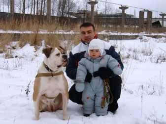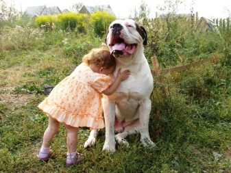 Among the advantages of the breed, the owners noted loyalty and affection for their master. The dog is ready to follow his beloved family member everywhere and everywhere, and can also protect an adult and a child in case of danger. The American bulldog is athletic and energetic; he will tirelessly cover long distances, chase a ball and a stick, run after a bicycle. A well-bred and obedient dog can be left with children, even entrusted to them to walk it. The dog will be happy to take part in any games.