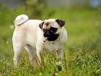 The pug's tail is located in a tight curl. Two turns - this is a valuable feature, which suggests that the dog is purebred. Landing should be high and lie on its side with the pressure to the thigh. The bulldog has a short tail, which is wide at the base, and begins to narrow towards the end, landing is low. From birth, it can be nodular or broken, which suggests that the dog is purebred. The tail of some individuals is wrapped in a ringlet, but such a sign is not among the mandatory.
