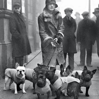The French Bulldog is descended from the English Bulldog, which was used as a fighting in the bullring. French is a miniature copy of English, before they were also used for fighting. But the fighting was banned, so the breed was remade into a rat-catcher. Although the name of the dogs is French, it appeared in England, from where over time they came with emigrants to France. Dogs quickly gained popularity, only very wealthy people could buy them.