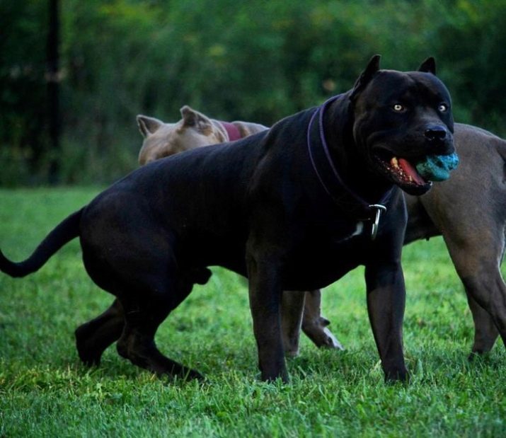 Fans of black pit bulls say that despite their appearance, their pets are the most tender and loving animals. These dogs are especially actively bred and acquired in the USA.