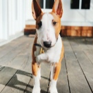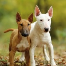 - Color. The classic color of bull terriers is considered to be white, which allows partial pigmentation with spots of a different color on the chest and head. In addition to white, red, black, red and brown colors are also recognized. The requirement for the color of these dogs is the dominance of one particular color. Also there are individuals of these dogs with the so-called "tricolor" - several colors in color (brindle, wild boar, swamp). In addition to the colors presented, there are individuals with a golden and blue color, however, such dogs are usually rejected.