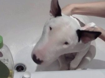 These dogs do not need frequent washing with shampoos and lotions, they will be enough to bathe 4 times a year. This is not the breed of dog that will throw itself into dirty puddles or into the water, mini-bulls - born purebreds. In order for the dog to dry faster, it is advised to carefully wipe it with a towel - so you will reduce the chance of a cold. On the strong and powerful teeth of miniature bull terriers, tartar and plaque regularly accumulate. In order to prevent its formation, you need to brush your dog’s teeth with a special paste at least 1 time per week or give vegetables that clean them from plaque - tomatoes, for example.