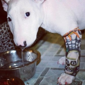 In addition to their external qualities, white bull terriers had a cheerful and active character, a hardy and strong body, as well as cleanliness and a sharp mind. Representatives of this breed were so wildly successful that at the end of the 19th century among the teaching and student body of Oxford it was considered noble and elite to have a purebred white bull terrier at their disposal.