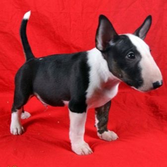 The history of miniature bull terriers begins in the period of active breeding experiments conducted by Hinks in the middle of the XIX century. During his many experiments, dozens of different breeds of dogs were used, which once led to the birth of white bull terriers of an absolutely identical standard, but smaller and smaller. Initially, these individuals were rejected or simply sold at reduced prices, but soon even in the litter of purebred white bull terriers, miniature dogs began to be born. Very soon the breeder decided to separate this breed of dog into two types: standard (large) and mini (miniature). If the bull terriers were designated by the American Club of Dog Breeding as a representative of the fighting breed, then the status of a purely decorative appearance was assigned to the miniature individuals.