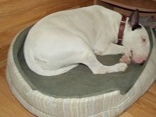 A bull terrier is an animal that will always protect the owner. Noh, there are no guards from these dogs. Contrary to stereotypes, the bul will not bark menacingly, block the way for guests and try to bite them to death. No, in most cases the dogs are very friendly towards visits, but if the owner starts to threaten something, then the dog will immediately have reflexes: he will not warn by barking - he will immediately pounce.