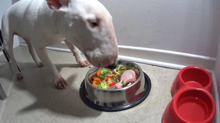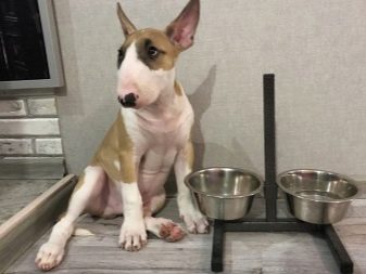 Bull terrier diets can be of two types: feeding with dry food or natural food. The first option is good because the owner will not need to clearly think through a feeding plan and select the right ingredients. You do not need to buy additional vitamins for harmonious development. But it is worth noting that dogs can be fed only first-class feeds, cheap formulations will lead to many health problems.