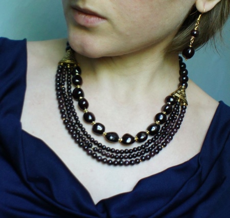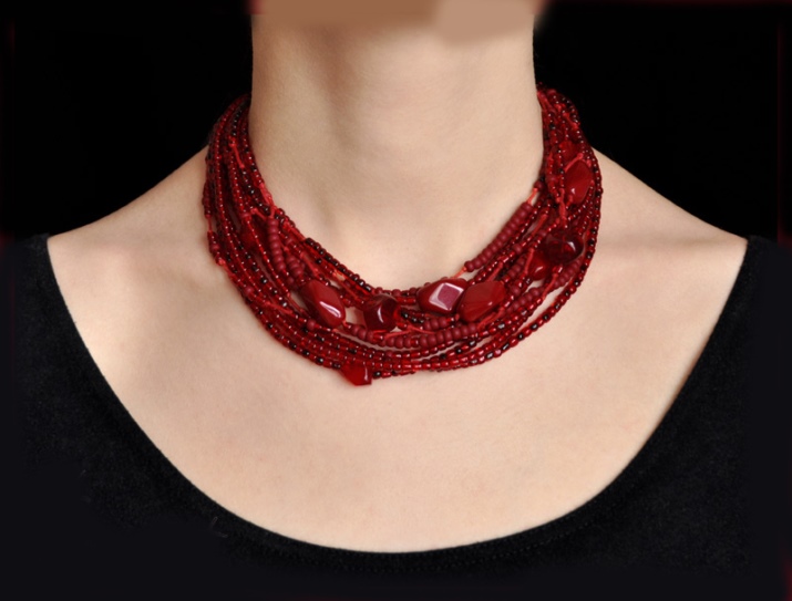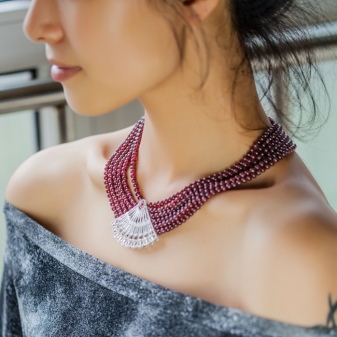 - Beautiful and spectacular jewelry will be a great addition to casual outfits. You must only observe one important condition: the clothes must be made in neutral or pastel colors. You can pick up a simple blouse with a long sleeve or a sweater with jeans and complement this ensemble with classic garnet beads.