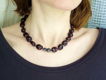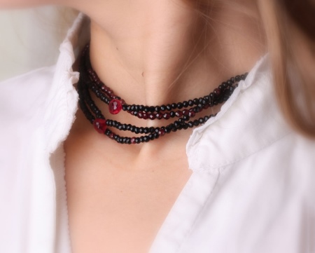 Often, classic bead options consist of charming polished minerals. You can choose not only a bright decoration, but also a product of deep dark red color.