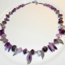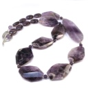 Fine and graceful beads from natural amethyst. These are primarily opaque stones that have retained all their natural purity. Stones of various shapes and sizes are assembled together. Such beads can emphasize a sense of style and independence of a woman.