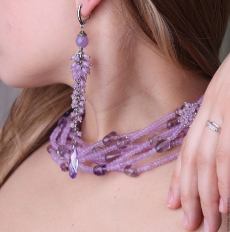 Amethyst jewelry is not only elegant and beautiful, but also has healing properties. If on the neck of the lady beads from a gem flaunt, you can be sure that this is an outstanding person with a strong character, who is able to defend herself from evil spells and bad looks.