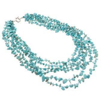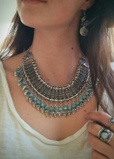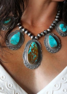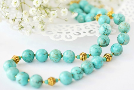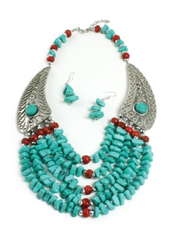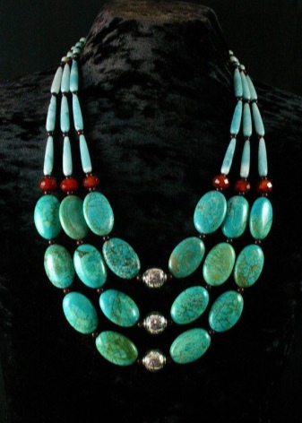Today, jewelers are designing a variety of turquoise jewelry, complemented by other gems or metal elements. You can find beads that look more like a real necklace. In such instances, the beads are complemented by several drop-shaped pendants on the front.