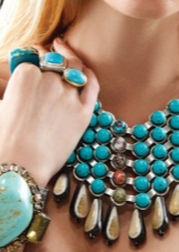Often, turquoise jewelry is diluted with gold and silver details. Original products complemented by short segments of chains are also popular today.