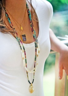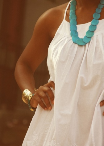 - Narrow and long beads will combine a summer light dress with wide straps. Or a beach outfit on thin straps.