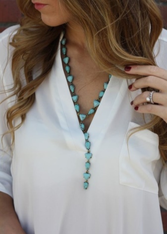 Turquoise jewelry is combined with everyday sets. Other jewelry with rubies or diamonds cannot boast of such a property. You can wear a summer dress, a formal suit or an outfit in the style of casual and complement it with beads.