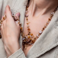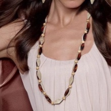 The beads with medium-sized balls ending in the chest area are considered universal. They are suitable for women of almost any age and physique.