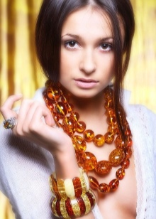 A gorgeous amber necklace will suit an evening dress. It should be made of polished gems, rough rough stones in such a bow are unacceptable. If you want to use additional jewelry in your image, let them be made of gold or gilded silver.