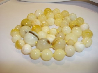 White amber can have colored inclusions - blue, cognac, honey. Such gems affect the body most fruitfully, relieve insomnia, and help fight outbreaks of anger.