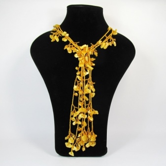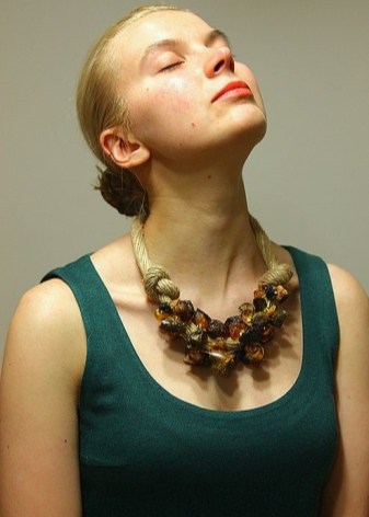 In summer, a string of amber beads will complement a dress or sundress made of light natural fabrics. It can also be a blouse or tunic made of cotton. Please note that this should be a laconic decoration, discard rough massive beads.