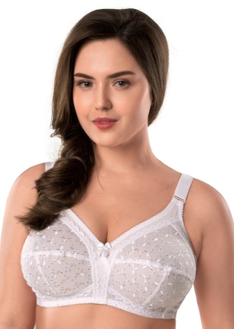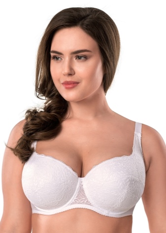 Tribuna brand produces wonderful bodices for owners of magnificent breasts. Beautiful white patterns are made from cotton, polyamide and elastane. They are equipped with comfortable wide straps that provide extra support for the bust. The cups are made of elastic lace on foam.
