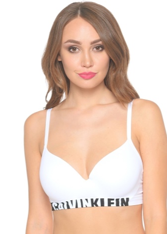 Want to get a bright and original bra in a sports style? Then you should pay attention to products from the famous brand Calvin Klein. In addition to classic and solid models, he produces wonderful white products with black details (letters from the name of the company), the lower part of which is framed by a bright yellow stripe with the brand name.