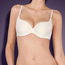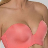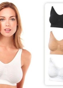 Has a special insert made of silicone or foam rubber. When it is worn, the same effect of a beautifully raised chest is created, as with a traditional bra, with the only difference being that the cups of such a product themselves are made without seams. Such a bust is completely not felt on the body.